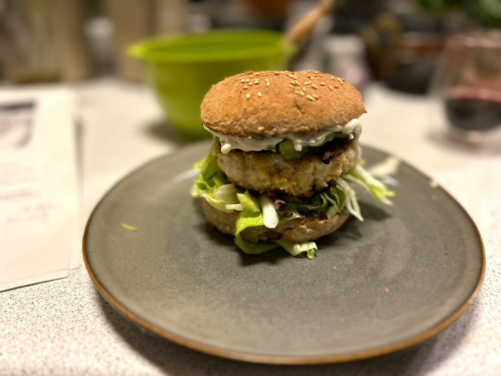 Men herhjemme spiser jeg faktisk aldrig burgere ude i byen. Nå ja, det er så ikke helt rigtigt, for jeg spiste en på café i december, og den (og de tilhørende fritter) var så fed, at jeg fik det dårligt.