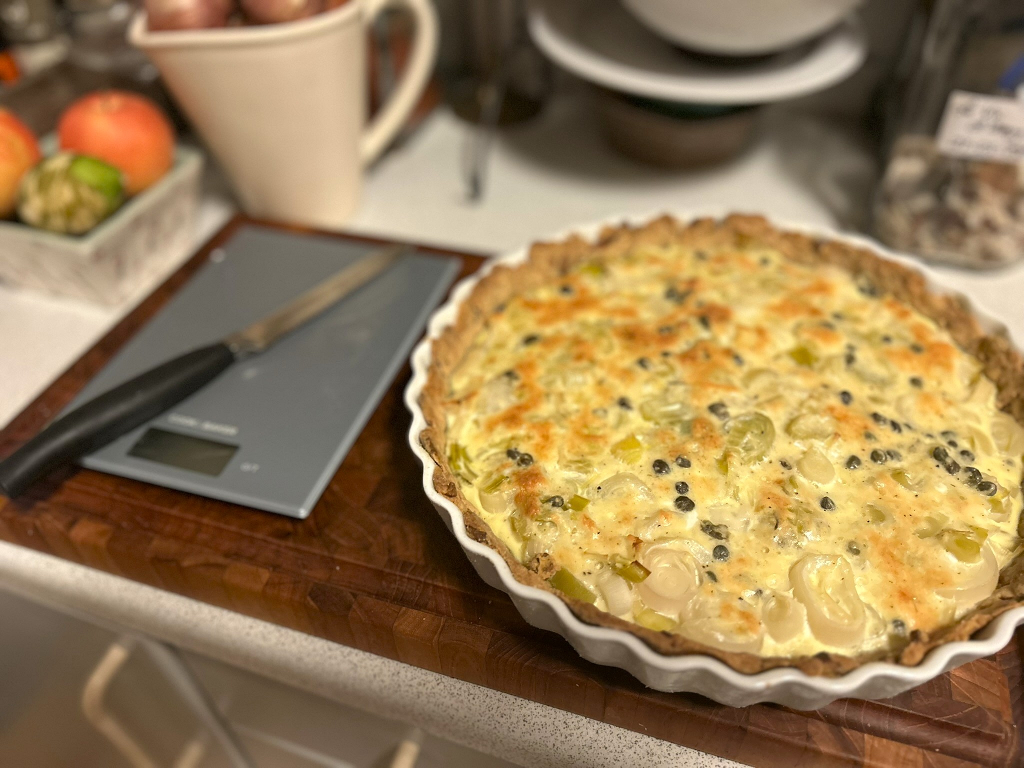 Denne her quiche er noget af det lækreste, jeg har lavet længe. Og jeg vidste faktisk godt, at den ville blive god, for jeg har lavet den et par gange før. Jeg fandt opskriften som et fotokopieret ark papir forleden, hvor jeg ryddede op i en stak papir. Men jeg kan simpelthen ikke regne ud, hvilken af mine kogebøger, den er fra. Jeg har mange.