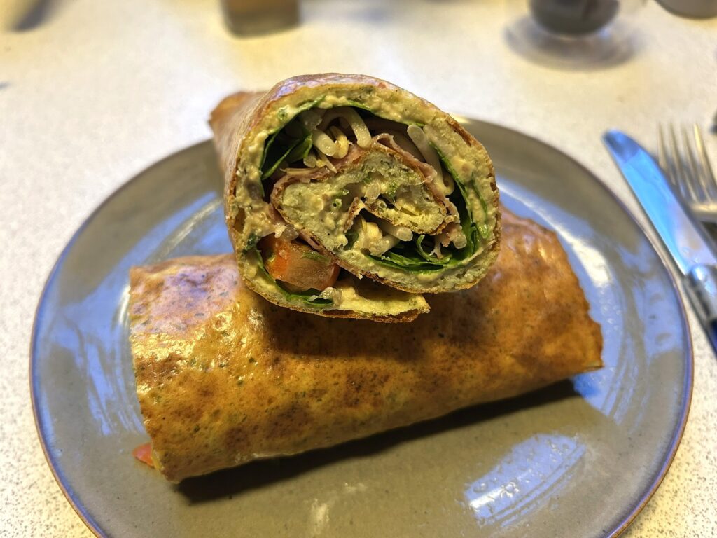 Jeg er ude i de spøjse opskrifter i øjeblikket. Den her havde jeg også bare pillet fra til afprøvning, fordi den så spøjs ud. Jeg var ikke helt overbevist om det der med mild spegepølse i. Men altså, det smager virkelig godt! Jeg var totalt glad og imponeret, og så er det SÅ nemt og hurtigt at lave.