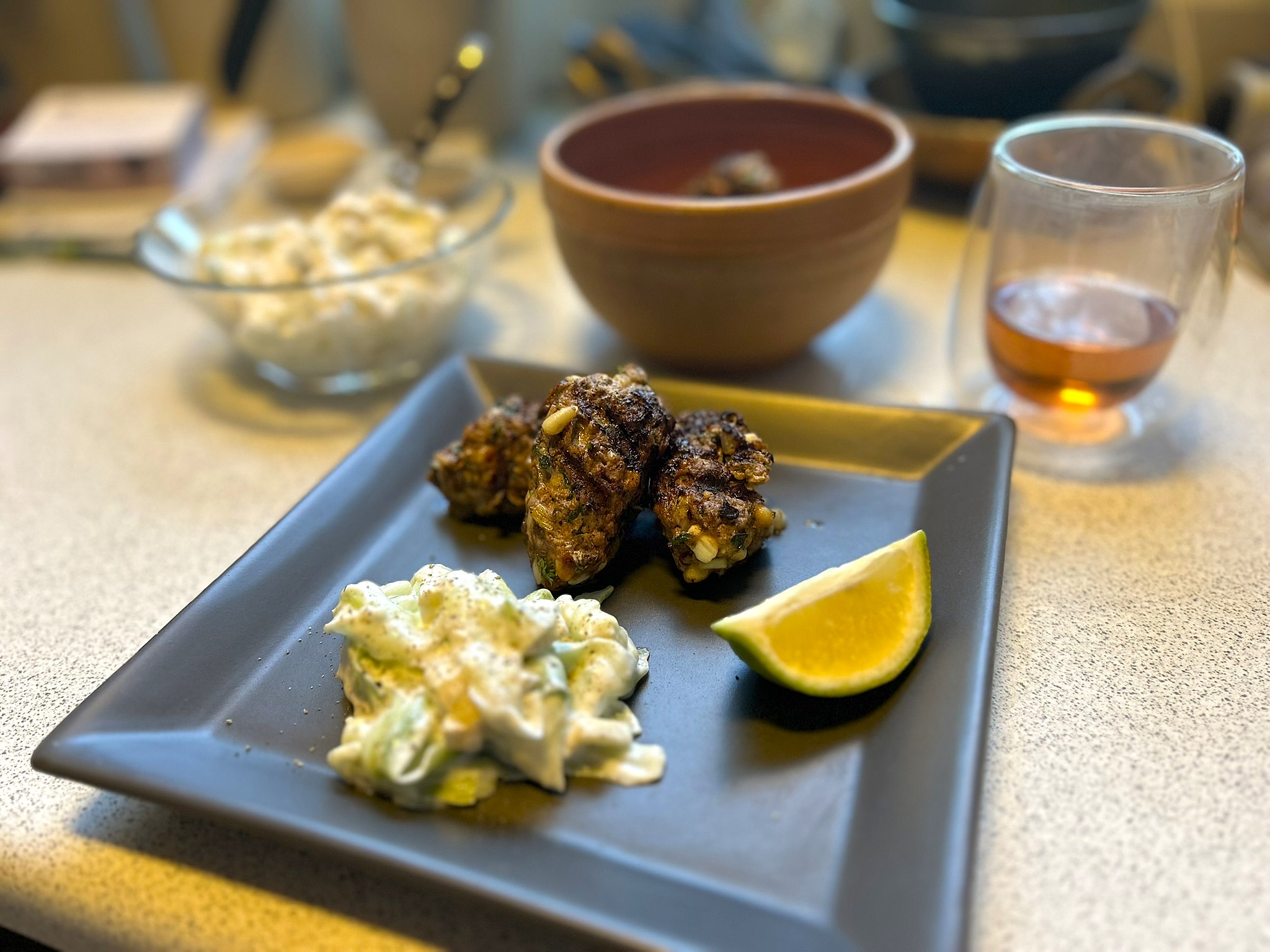Det gør de her frikadeller, som er lækre, supernemme og hurtige at lave. Tzatzikien smager udmærket, men for at være helt ærlig, kan jeg lige så godt lide den helt almindelige version, som man også kan finde her på bloggen, bare skriv “tzatziki” i søgefeltet.