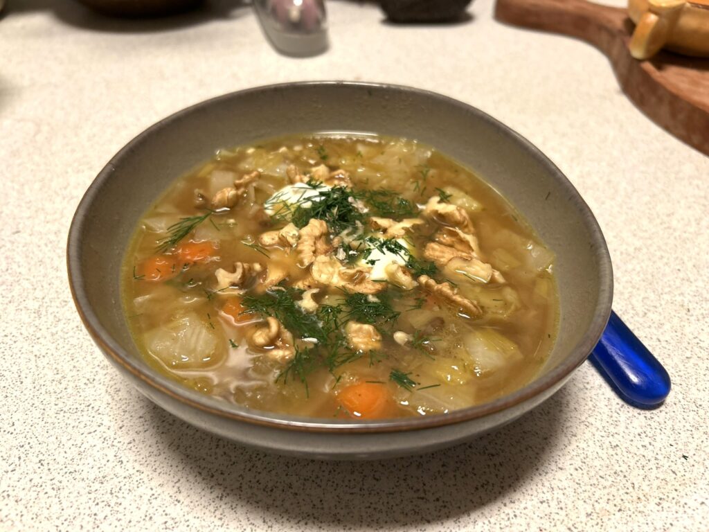 Jeg havde læst en artikel om alle de gode egenskaber i kål og kom til at tænke på hvidkålssuppe, som min farmor lavede ganske ofte.